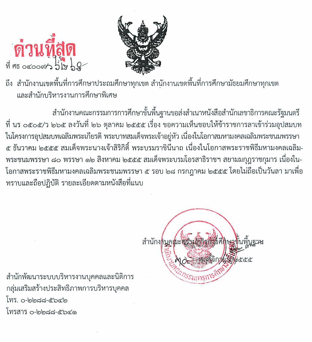ขอความเห็นชอบให้ข้าราชการเข้าร่วมอุปสมบทในโครงการอุปสมบทเฉลิมพระเกียรติฯ